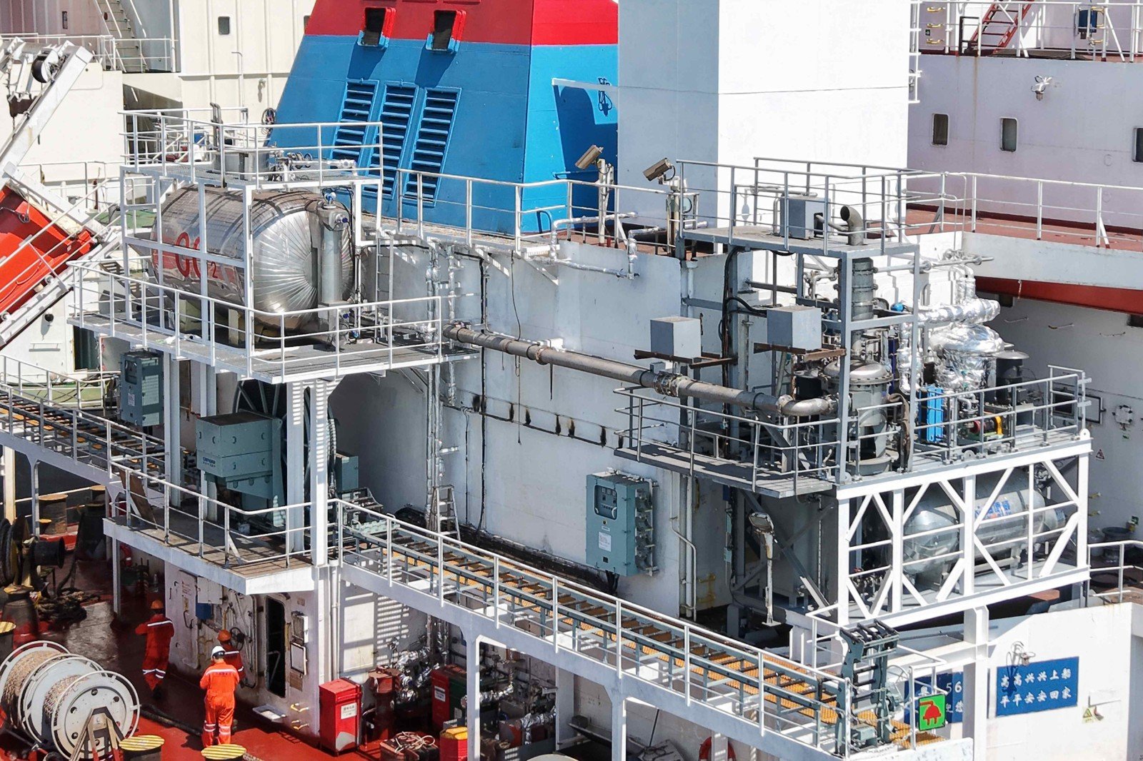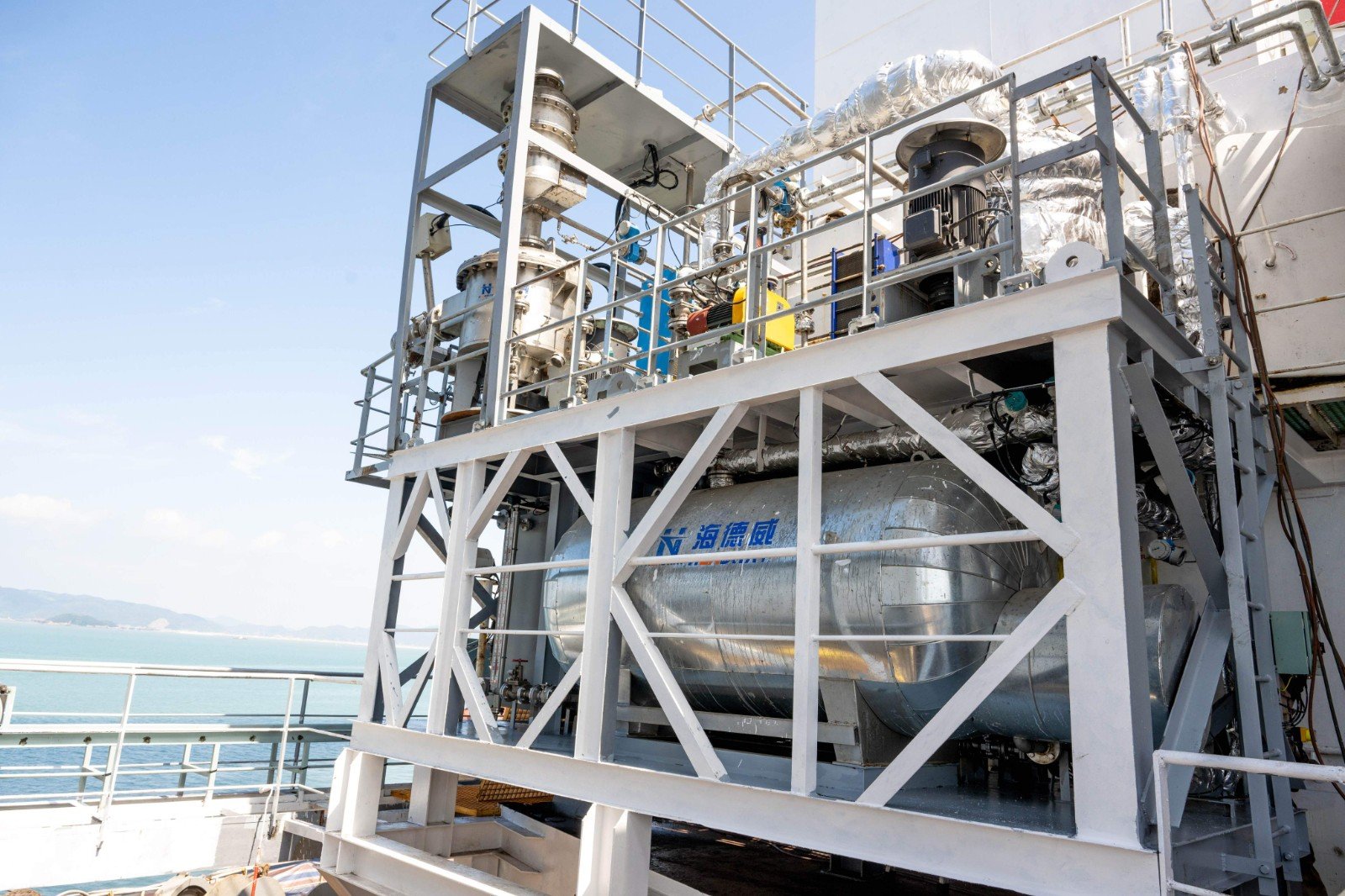 海洋卫士®船载碳捕集系统依托kaiyun 自主设计的高速离心脱碳技术和高性能吸收剂,以高速旋转形成的离心力场替代传统重力场,显著提升了气液两相传质效率,系统脱碳效率超过90%,二氧化碳捕集纯度可达99.6%以上,具有脱碳效率高、体积小、能耗低、安装及储运便捷等优势。