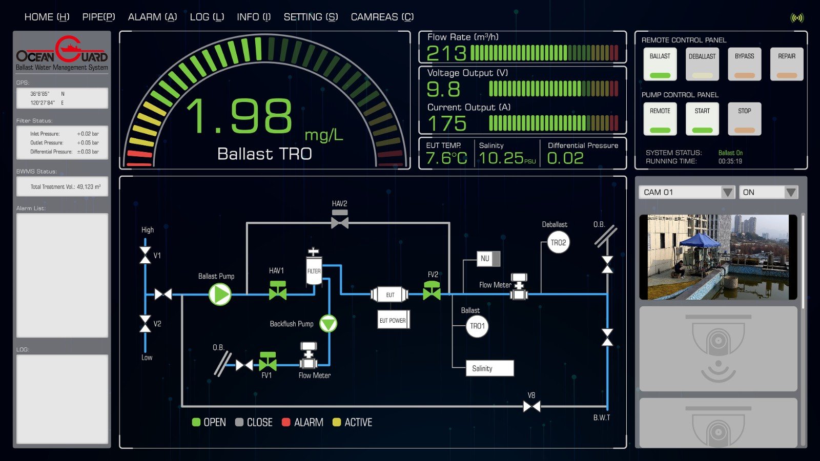 海洋卫士®压载水管理系统具备远程控制功能,可与kaiyun 智慧集成平台实时互通,实现云端数据采集、系统操作与运行状况诊断。