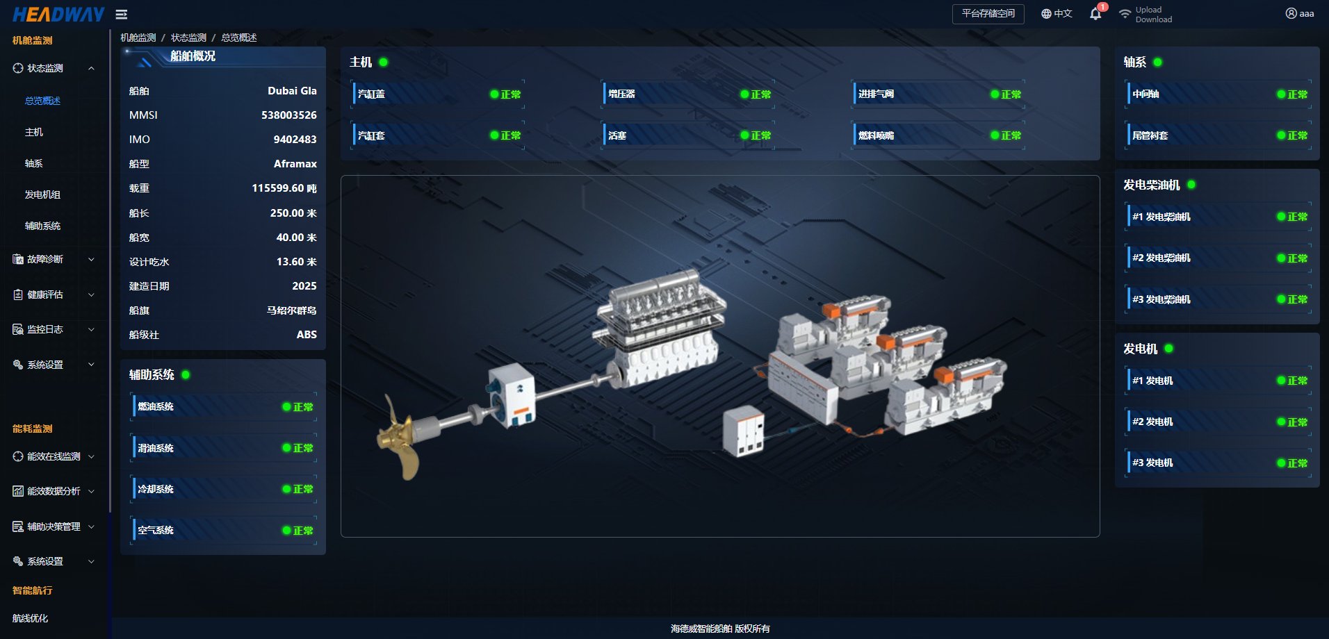 基于智能信息集成平台,通过对船舶机电设备的诊断和部分设备预判,进行状态评估和健康管理,实现设备故障事前预警,方便操作决策和维护保养计划的制定,推动设备运维从定期被动管理向主动管理转变。